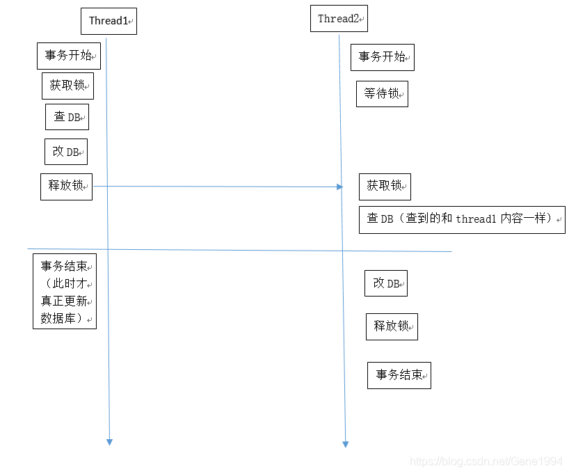 问题分析:第二次在锁内读数据库并未读到第一次锁内更新的值,分析原因为@Transational导致数据库事务未更新。