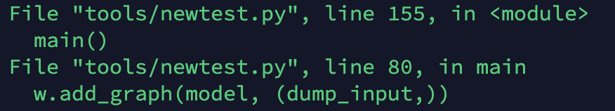 网上查了下可能跟网络结构中的None有关系,也可能跟pytorch TensorBoard版本有关系,反正没解决😅