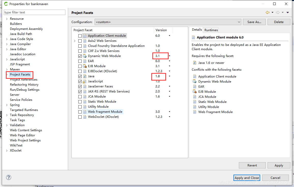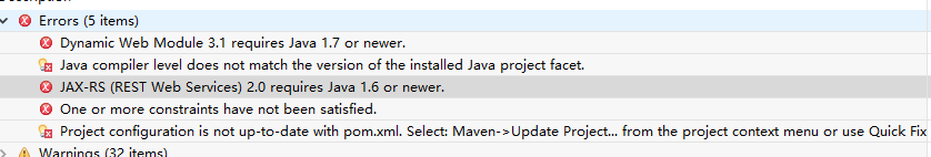 Dynamic Web Module 3.1 requires Java 1.7 or newer.