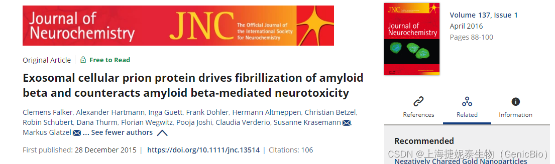 文章:Exosomal cellular prion protein drives fibrillization of amyloid beta and counteracts amyloid beta-mediated neurotoxicity