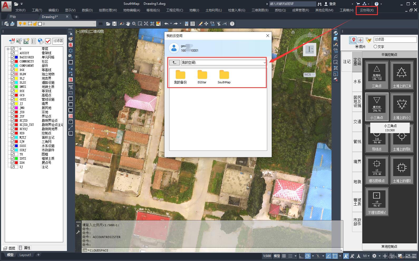 与云端平台、智能全站仪实现了数据联动传输,实现内外业一体化。