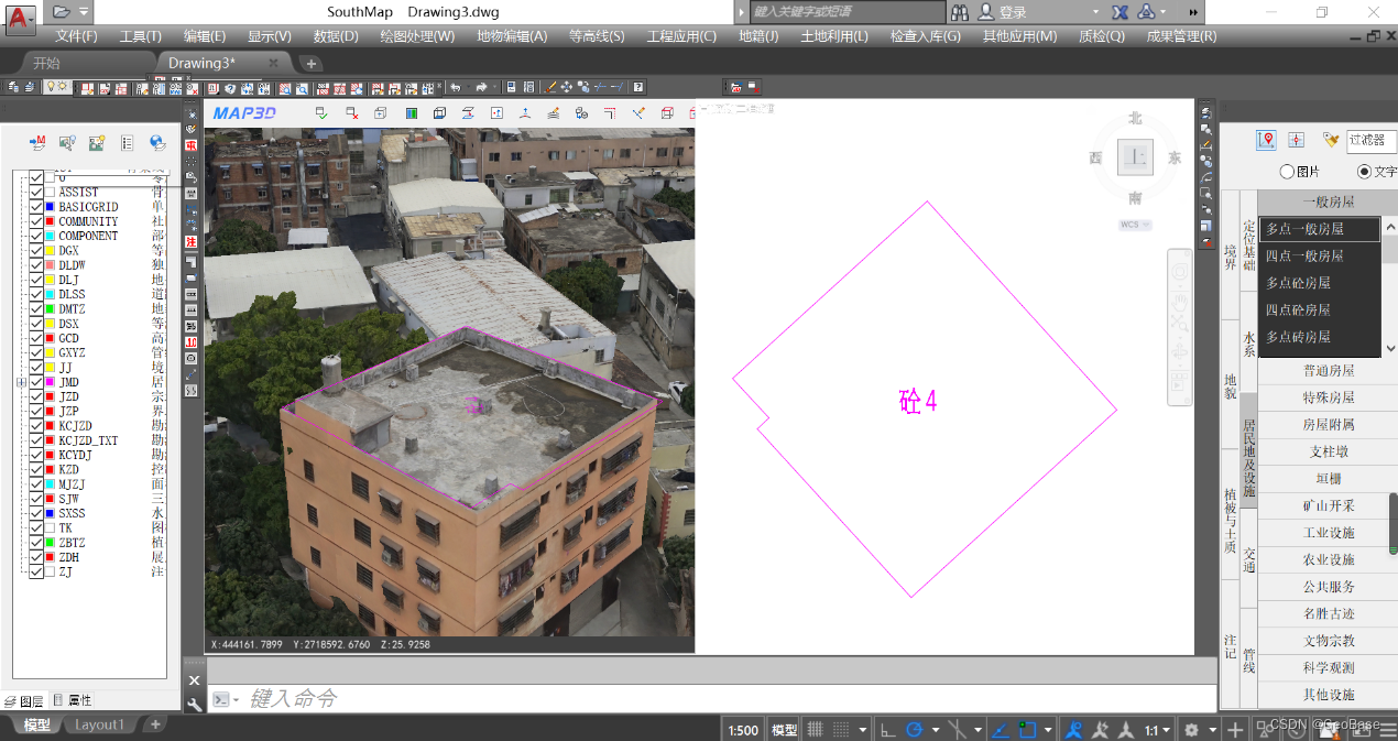 南方地理信息数据成图软件SouthMap是通过南方测绘20余年软件研发经验,基于AutoCAD和国产CAD平台,集数据采集、编辑、成图、质检等功能于一体的成图软件,主要用于大比例尺地形图绘制、三维测图、点云绘图、日常地籍测绘、工程土石方计算、职业教育等领域。