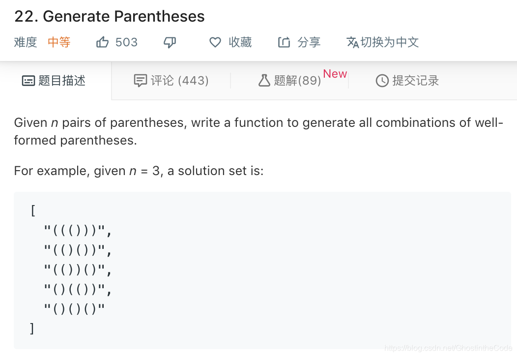 举一个栗子,当n=2的时候,排列组合符合条件的是这两种,"(())","()()",那我们把“()”放在其中会出现哪几种情况,"((()))","(())()","(())()","()(())","()()()",