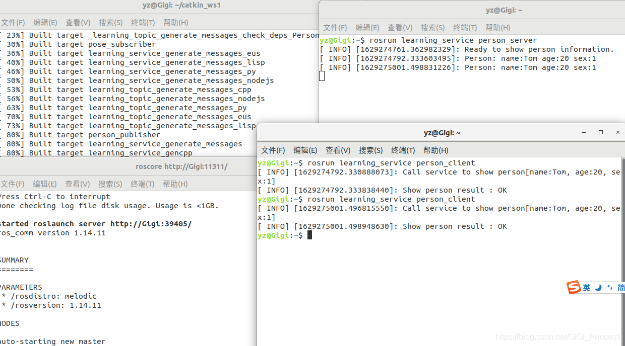 * 该例程将请求 /show_person 服务,服务数据类型 learning_service::Person