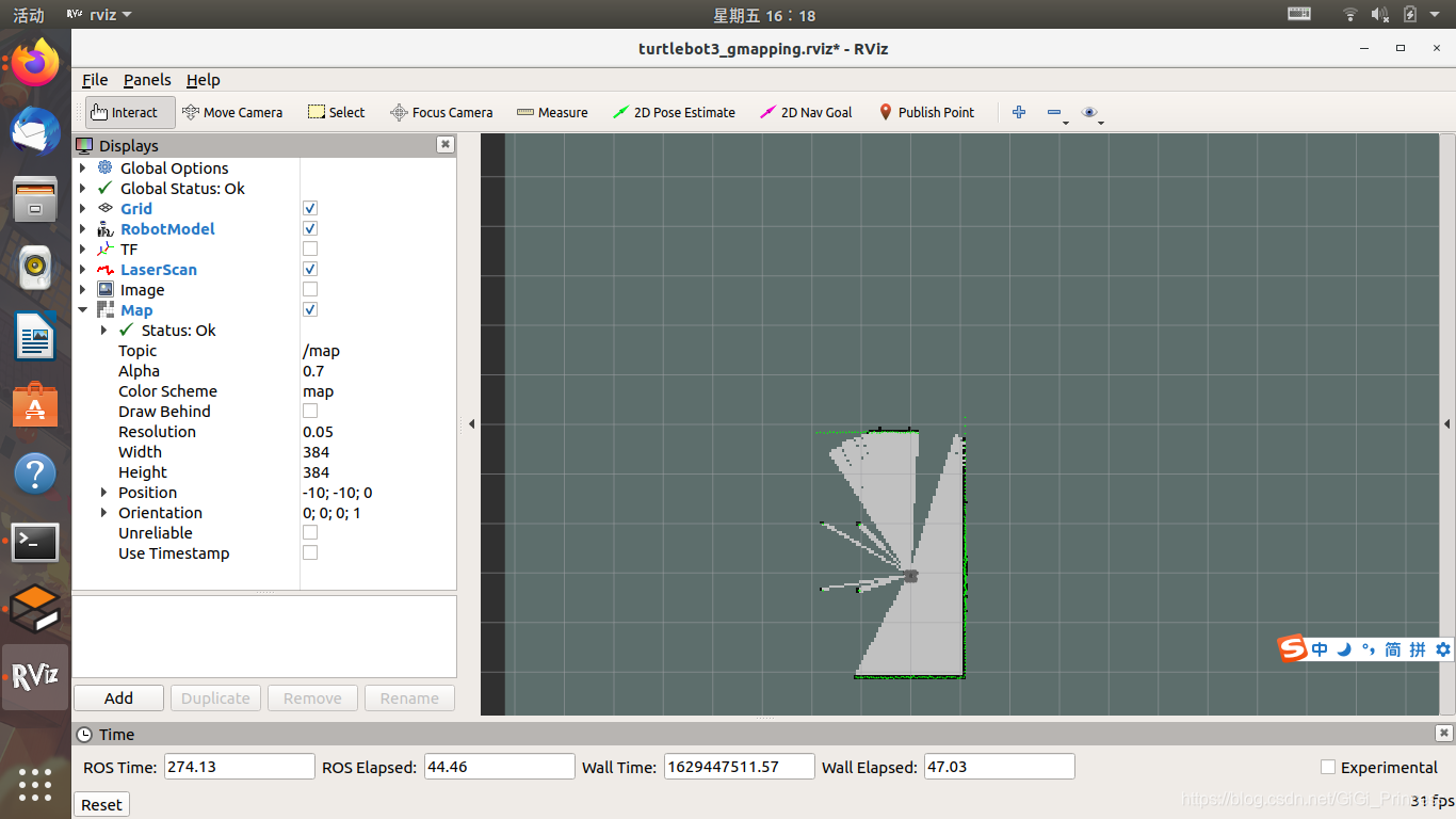 开启slam,建图算法选择gmapping