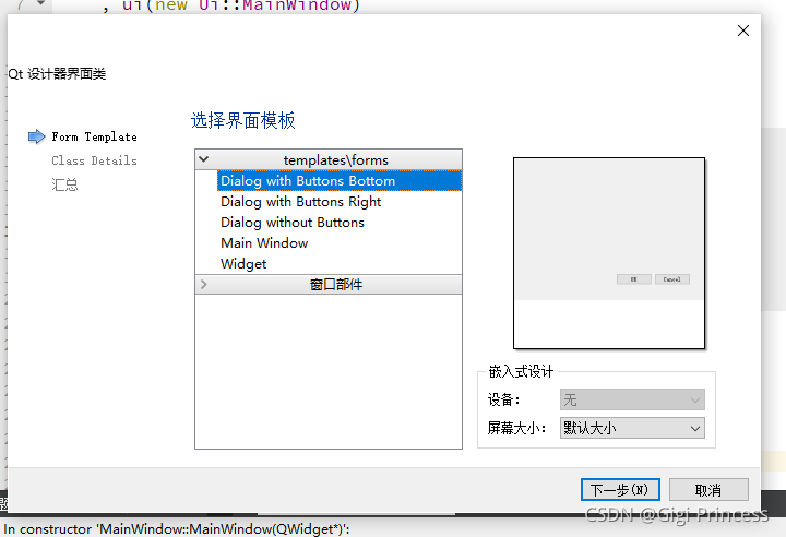 在创建Qt窗口的时候,需要让自己的窗口类继承下面三个窗口类的其中一个: