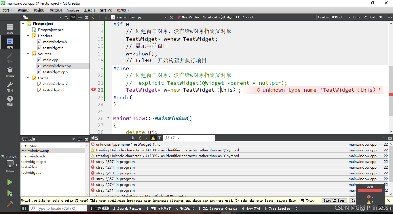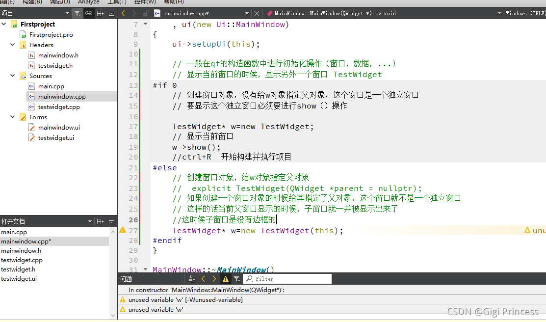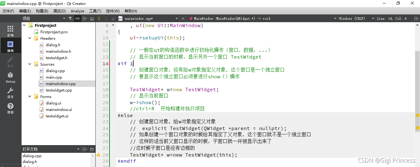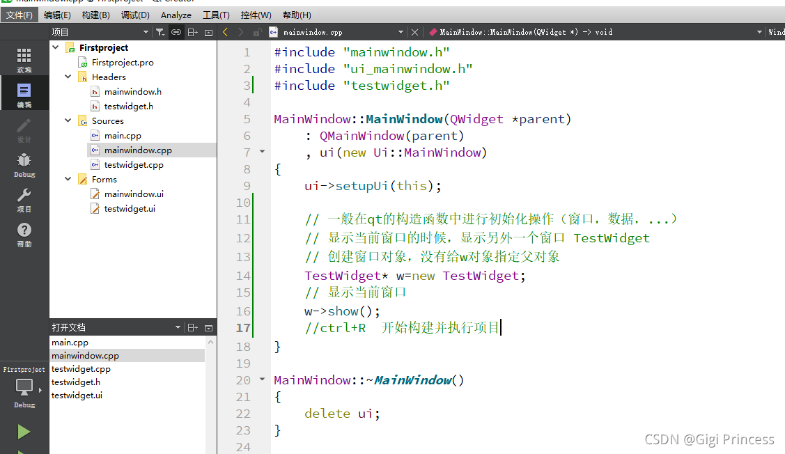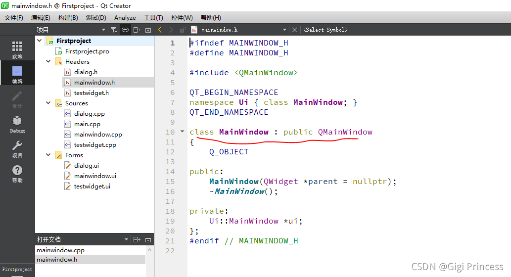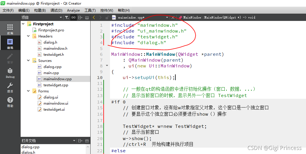 打开 mainwindow.cpp 要记得加头文件