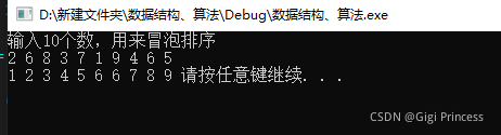 还是上面一排十个小朋友,第一个安安跟第二个全全比较,如果安安个子比全全矮,那安安还是占第一个位置,那么全全就跟第三个小朋友步步比较;如果全全个子比安安矮,那么安安跟全全就互换位置,再由换到第二位置的全全跟第三位置的步步进行比较,以此类推,相邻的小朋友进行比较,保证个子更小的小朋友站在靠前的位置,这样比较一轮下来,我们能保证最后一个小朋友一定是个子最高的,按此方法,再进行轮番比较,就能保证倒数第二个小朋友的个子是十个小朋友里个子第二高的...........直到轮完到第一个小朋友是最矮的,排序完成