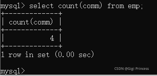count(*):统计表当中的总行数。(只要有一行数据count则++)