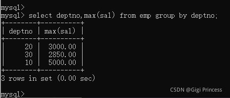 select deptno,max(sal) from emp group by deptno;