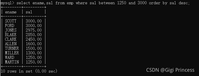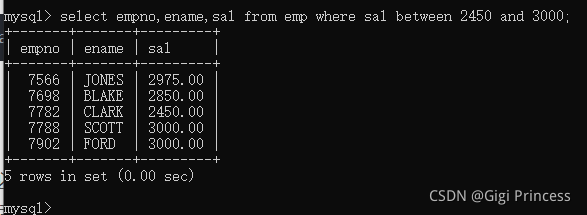 14.7 between … and …. 两个值之间, 等同于 >= and <=