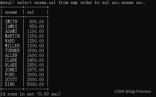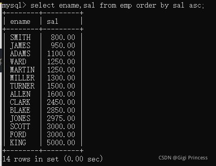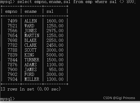 先从emp表中查询数据。