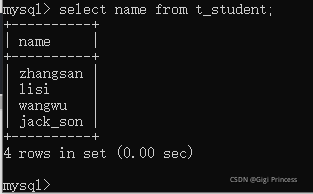 查看表中的数据: