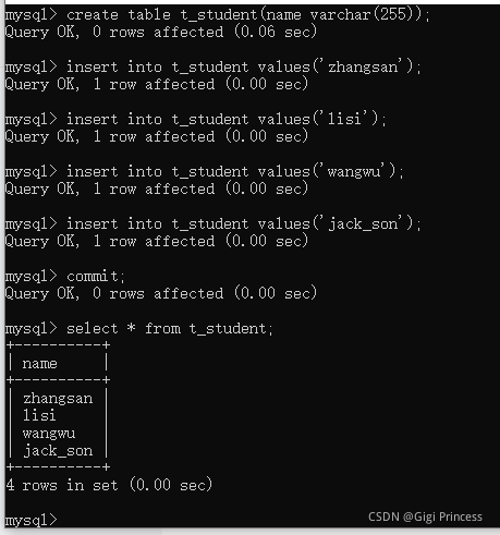 事务提交:commit;
