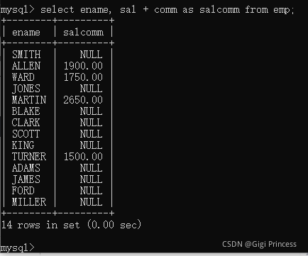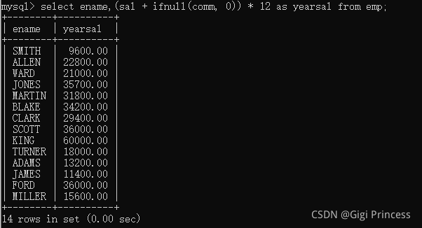 13.6 计算员工年薪sal * 12:字段可以使用数学表达式