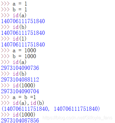 - Python会将一些小整数(-5~256)的存储空间固定,大整数每次使用时会被自动分配不同的存储位置。