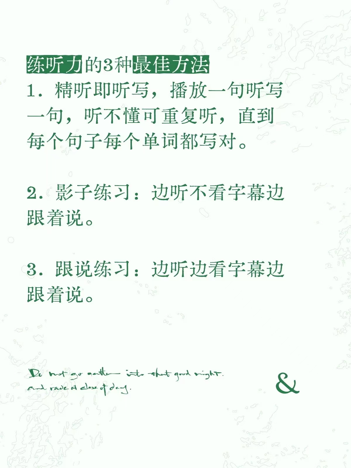 1. 精听即听写,播放一句听写一句,听不懂可重复听,直到每个句子每个单词都写对。