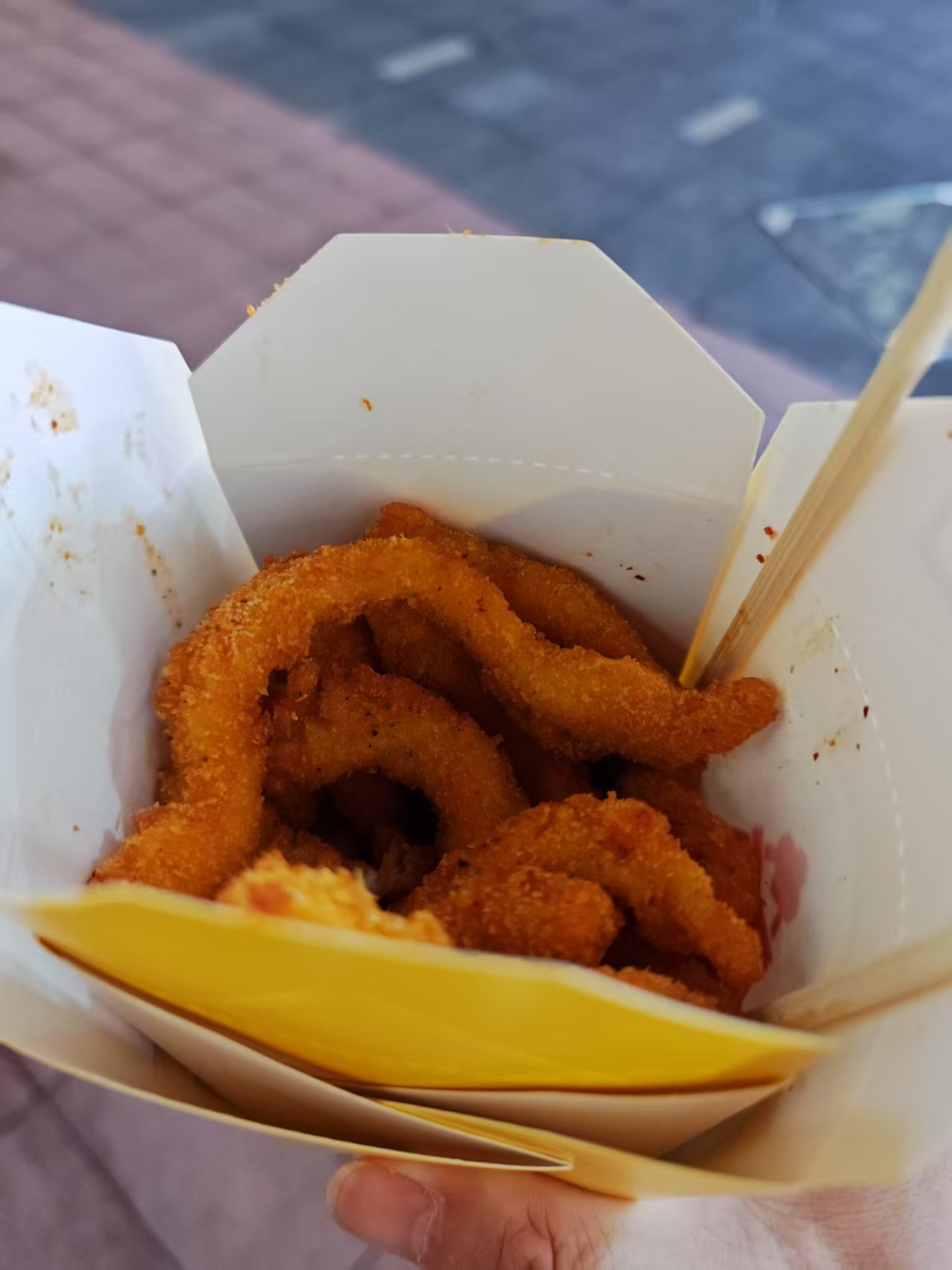 3天车企超级工厂同传项目结束,送搭档去了高铁站,我回途中吃个卫子夫鸡柳垫垫肚子,感觉有5/6年没吃过这种路边鸡柳了,还挺嫩挺香(σ≧∀≦)σ。然后回家吃晚饭。
