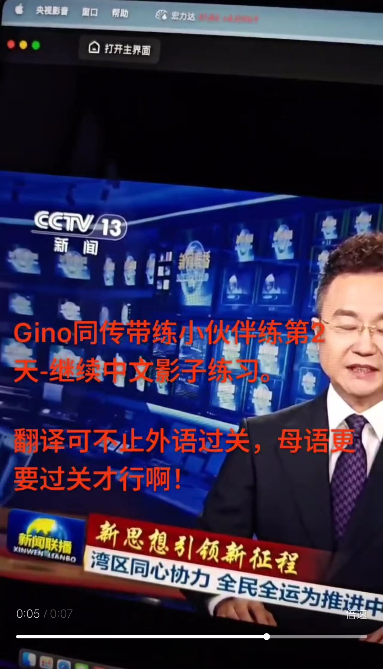 Gino同传带练小伙伴练第2天-继续中文影子练习。
