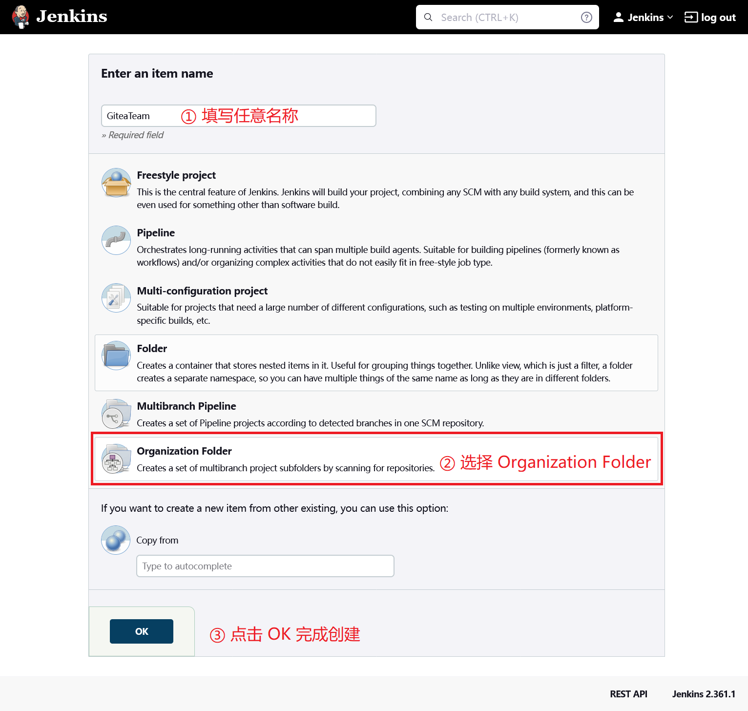 - Owner: 与 Jenkins 集成的 Gitea 组织或个人目录