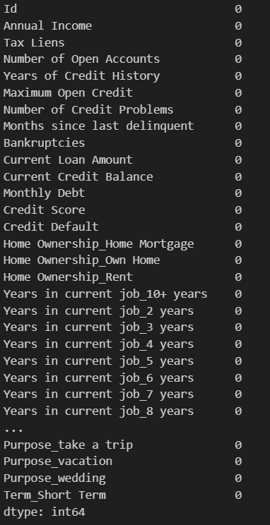 最终经过独热编码和缺失值处理的结果如下: