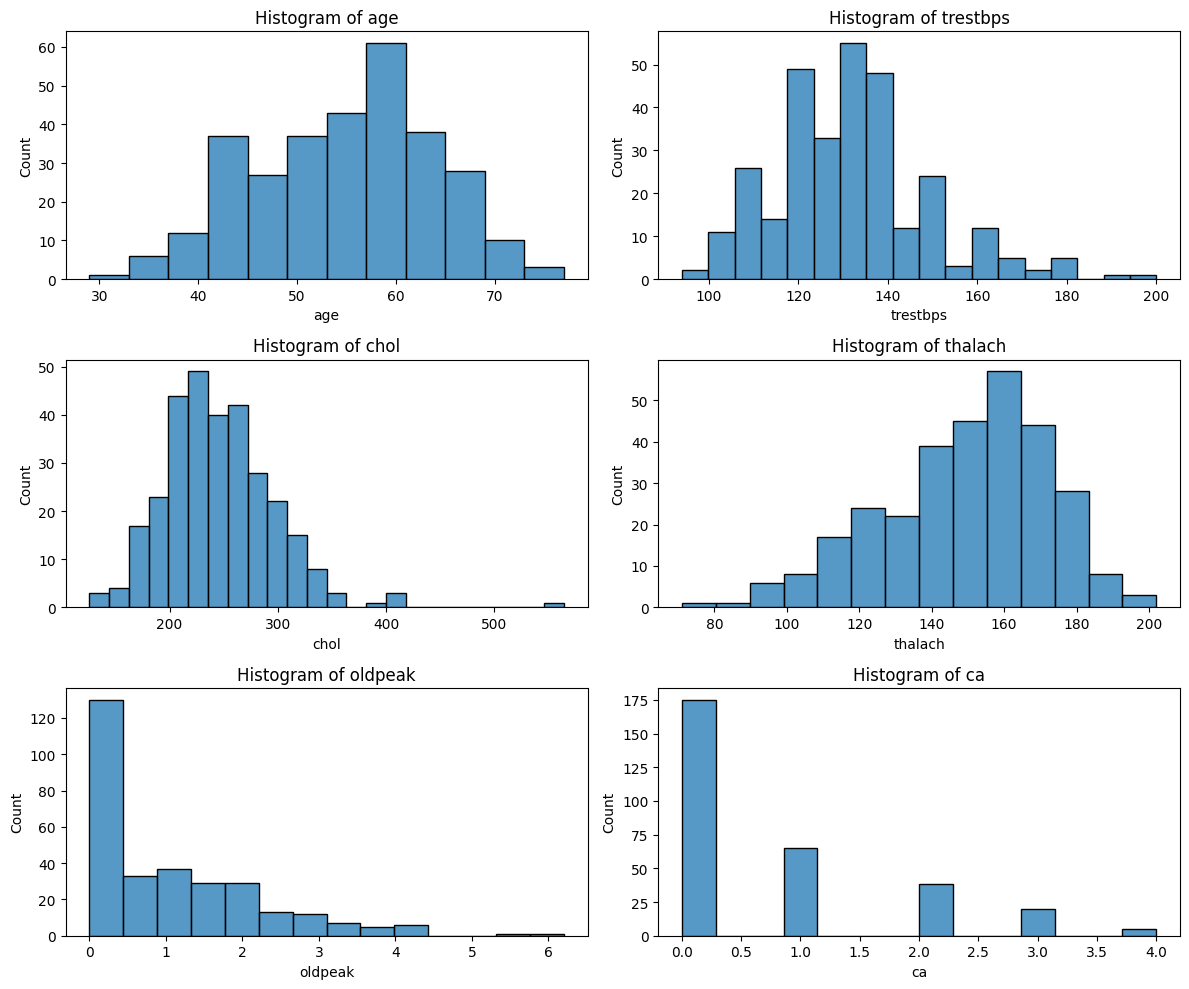 continous_features = ['age','trestbps','chol','thalach','oldpeak','ca']