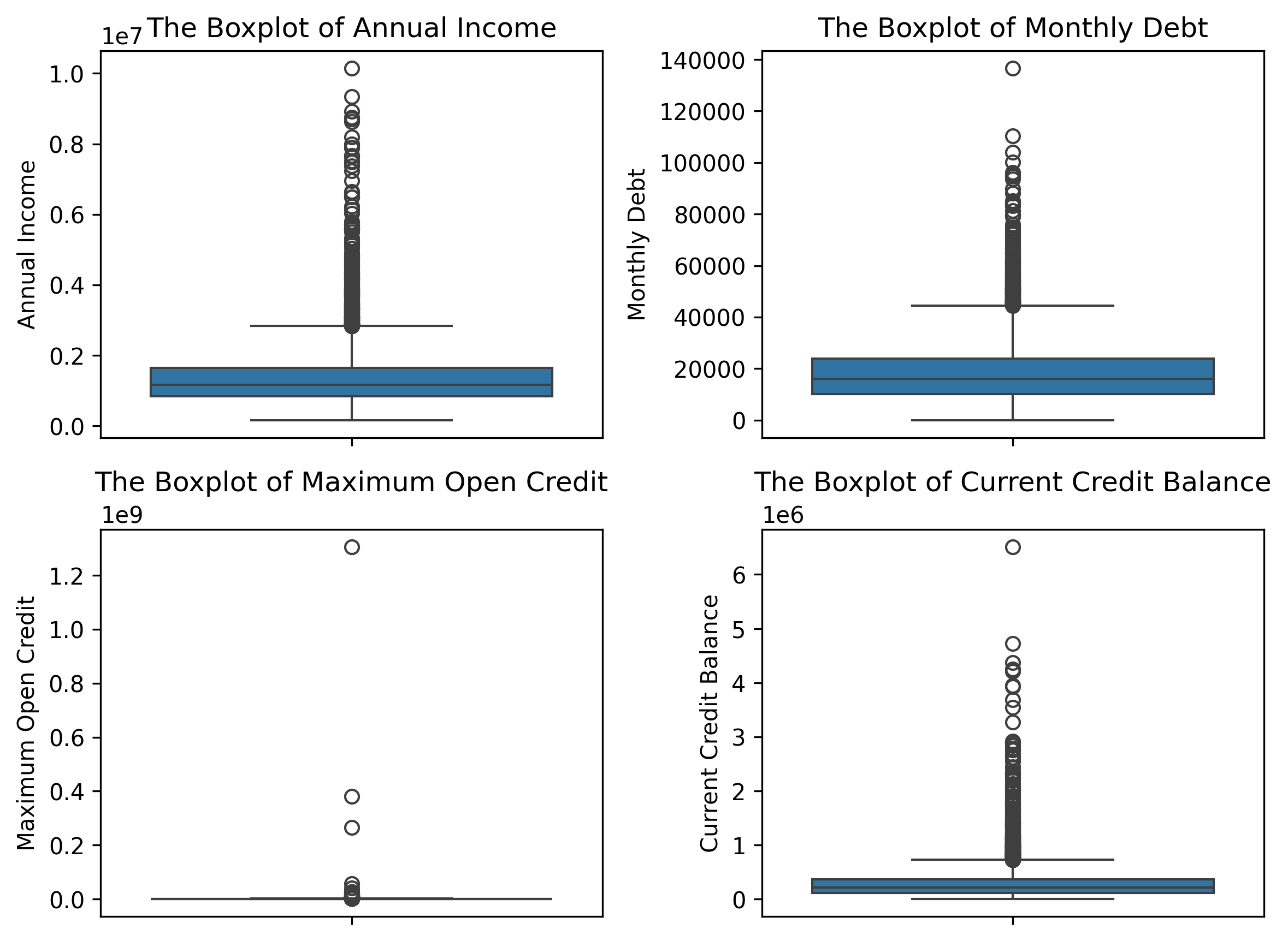 features = ['Annual Income','Monthly Debt','Maximum Open Credit','Current Credit Balance']