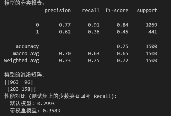 print(f" 带权重模型: {recall_weighted:.4f}")