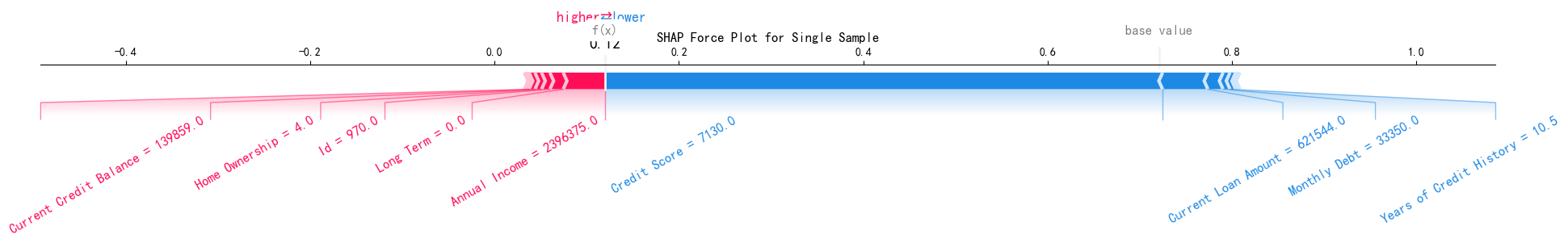 plt.title("SHAP Force Plot for Single Sample", pad=20)