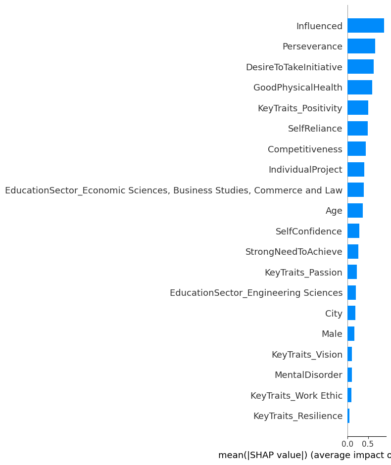 shap.summary_plot(shap_values, X_test, plot_type='bar',feature_names=X_test.columns.tolist())