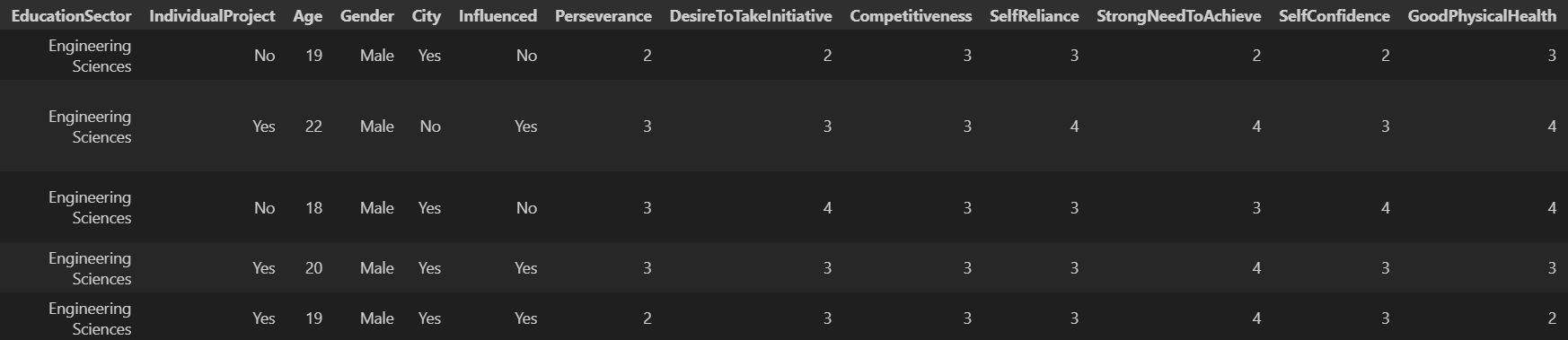 选择Entrepreneurial Competency in University Students进行分析,地址为:https://www.kaggle.com/namanmanchanda/entrepreneurial-competency-in-university-students