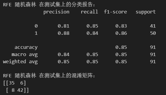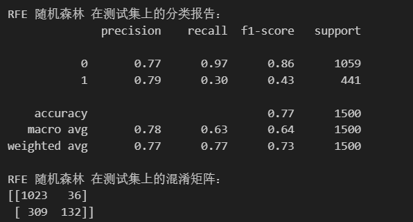 print("\nRFE 随机森林 在测试集上的分类报告:")