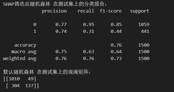 (5)shap筛选,选取了10个特征,结果与默认有差距