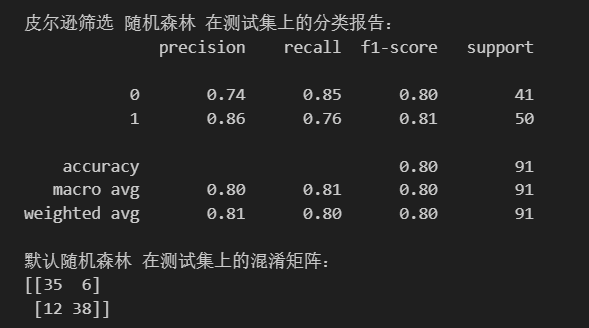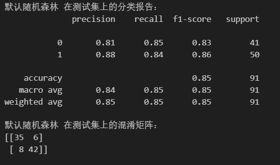 print("默认随机森林 在测试集上的混淆矩阵:")