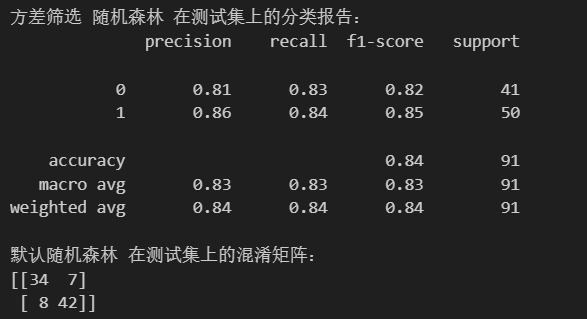 由于筛选方法与信贷数据集没有什么区别,流程和代码基本相同,下面只展示结果: