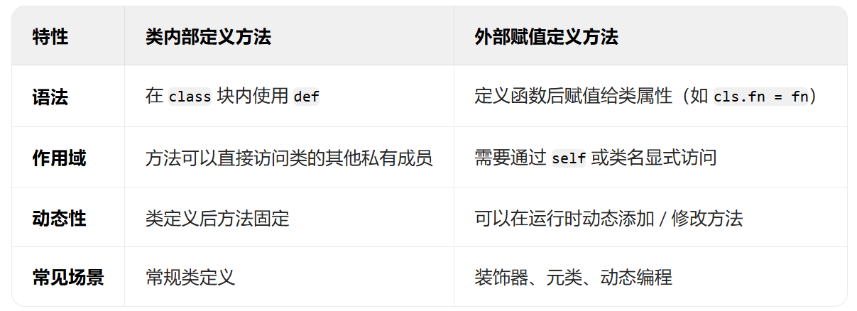 此外,还注意到另一种定义类的方法——在类外部定义后赋值给属性: