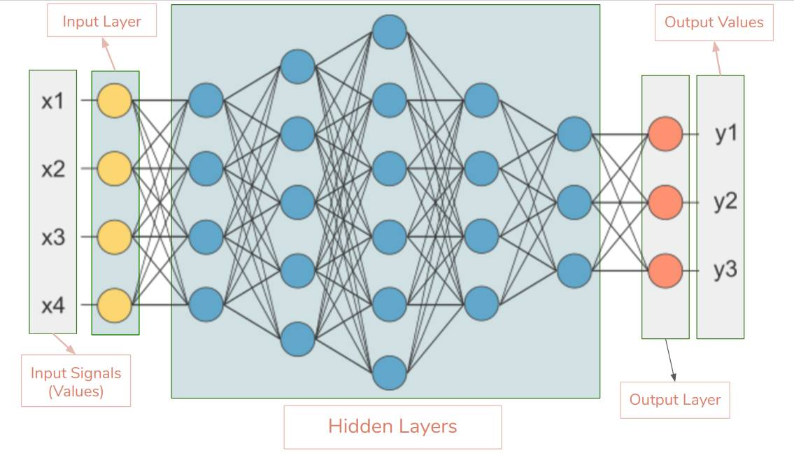 - 输入层:接受原始数据,比如图像的像素、文本词语