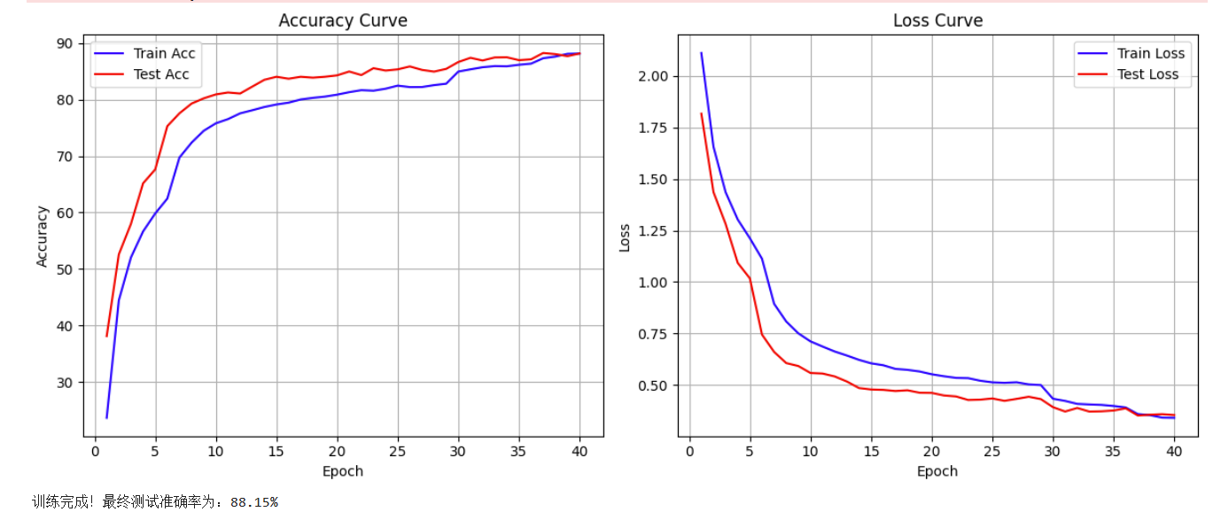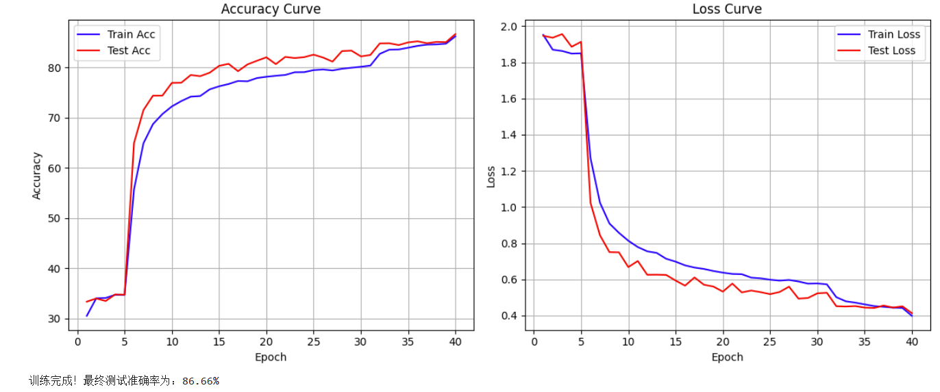 print(f'训练完成!最终测试准确率为:{final_acc:.2f}%')