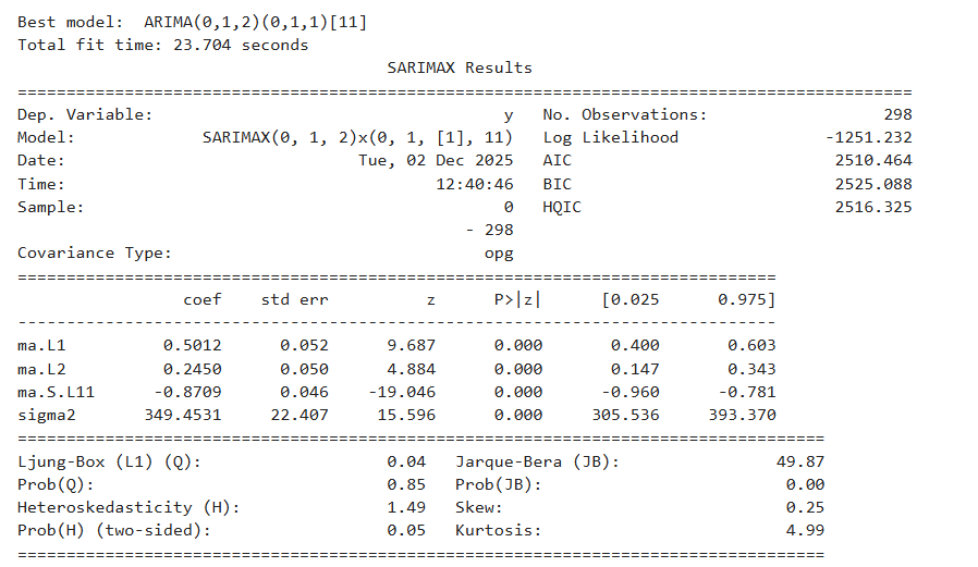 model = SARIMAX(train_data,order=best_order,seasonal_order=best_seasonal_order)