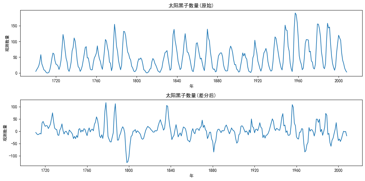 总体上,与之前不嵌入模型,单独处理的顺序相似:先进行季节性处理(季节性部分),然后再普通差分去除趋势(非季节性部分):
