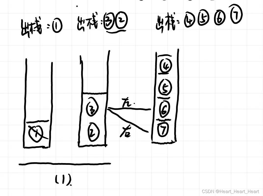 (3)那怎么将第三行再顺序遍历呢? 那就是按照7654入栈对吧,那按照第二层出栈顺序32,7654其实就是按照出栈元素的右左顺序入栈。如图。