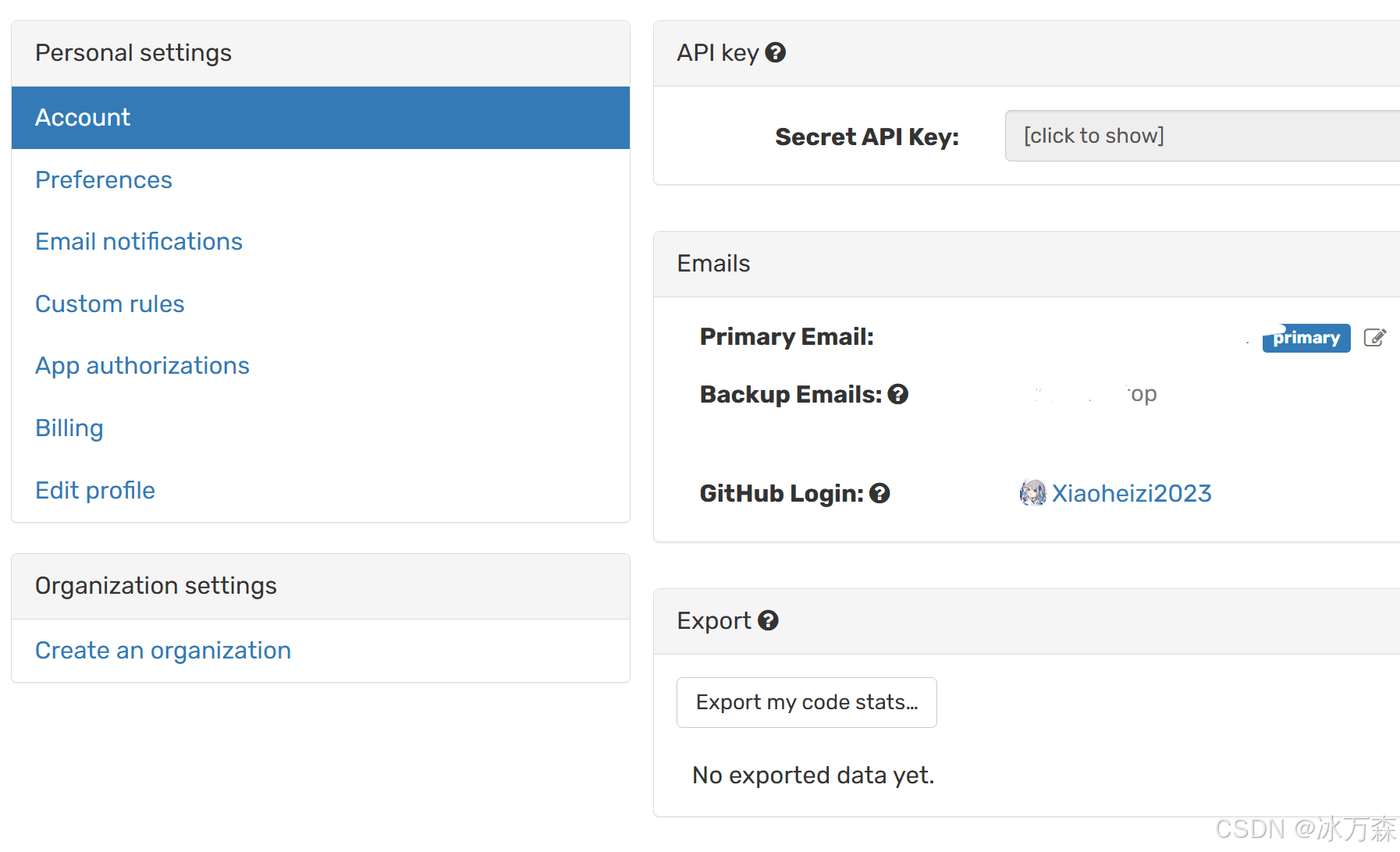 打开我的Wakatime,点个人头像➡Settings➡Account,查看是不是用Github登录以及绑定