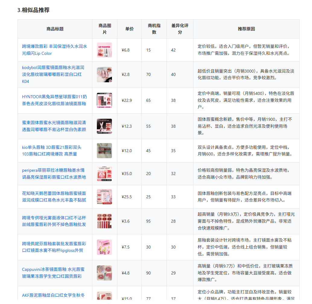 | 爆品二次拓展 | 输入已有爆品ID | 输出差异化可延伸商品 |