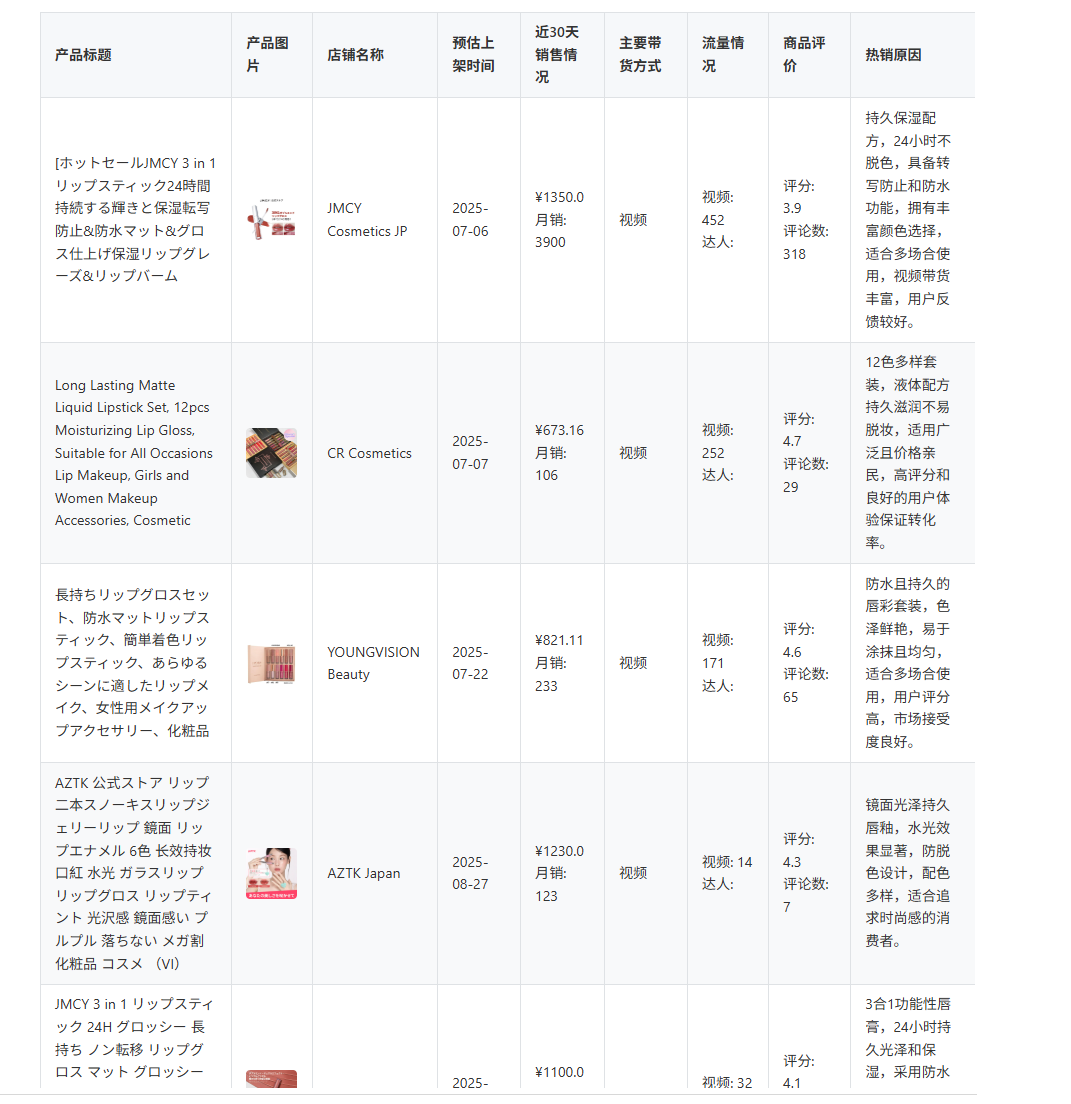 ✅ 示例:输入某个TikTok热卖品链接,系统会自动分析其7天内销售曲线、视频带货量、评论情绪变化以及买家地域分布,为后续选品提供可靠数据支撑。