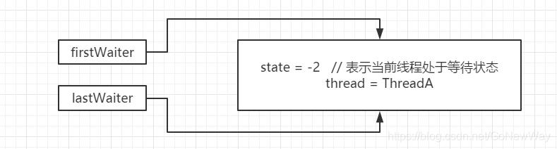 线程A获得锁后,state状态由0更新到1。那么此时线程A调用了condition.await()方法后。会使当前线程进入等待队列并释放锁,同时线程状态变为等待状态。