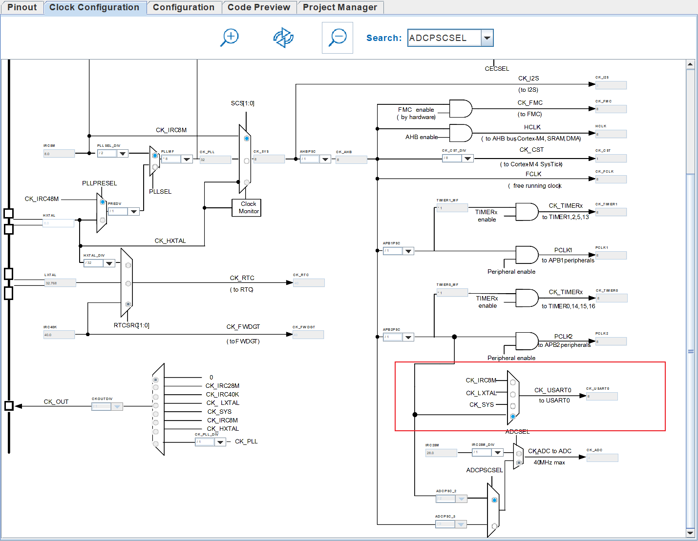 - 记录一下,要想用哪些外设,比如石油时钟要求的,一定要看看时钟树上有哪些外设能够用,否则没有办法使用