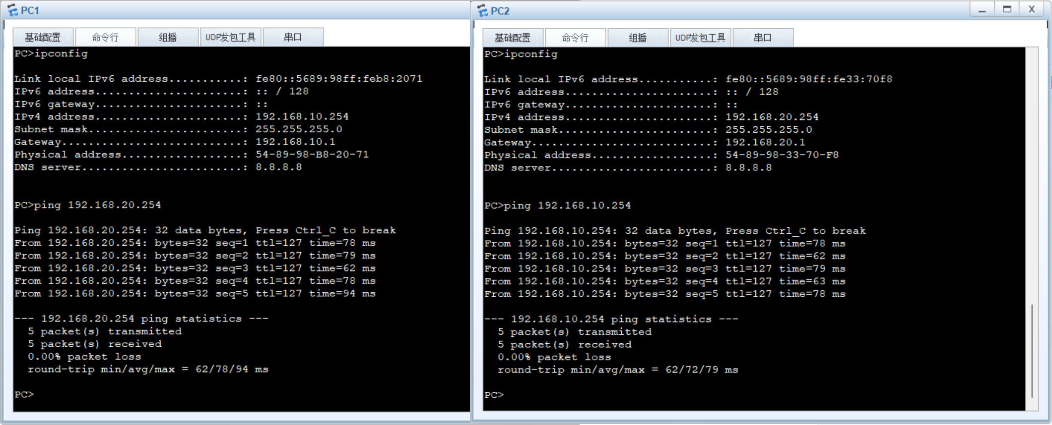| GE0/0/1.20 | 192.168.20.1 | / |