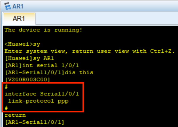 ・可以看到,当设备之间用串口线(Serial)连接时,默认链路类型就为PPP