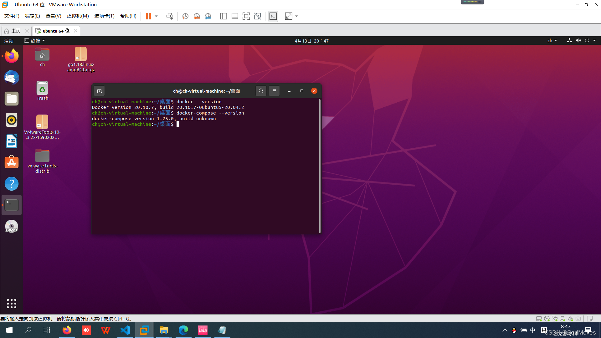 sudo usermod -a -G docker (这里的username就是创建虚拟机时候的用户名,我的也就是ch)