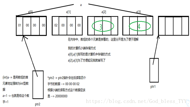 int *ptr2 = (int *)((int)a + 1);